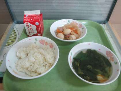 今日の給食は麦ごはん・牛乳・