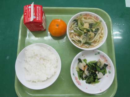 今日の給食は減量ごはん・牛乳・