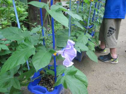 「○○ちゃんのアサガオ,咲いてる!」