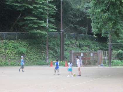 朝遊びのサッカーも