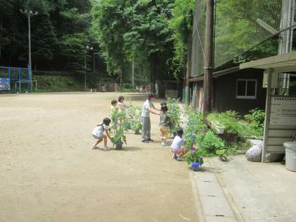 1年生がアサガオの世話と観察をしています。