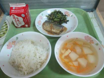 メニューは麦ごはん・牛乳・さんまのかわり煮・