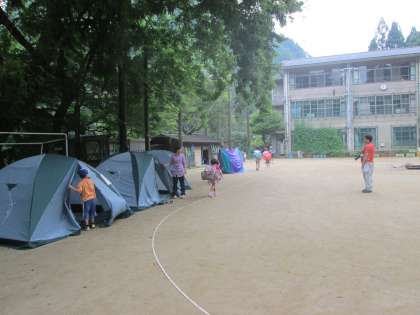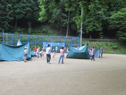 テント・荷物・ラジオ体操