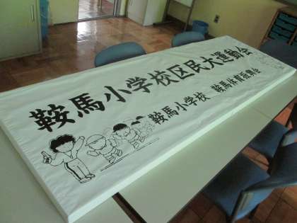 教頭先生が立看板を作っています。