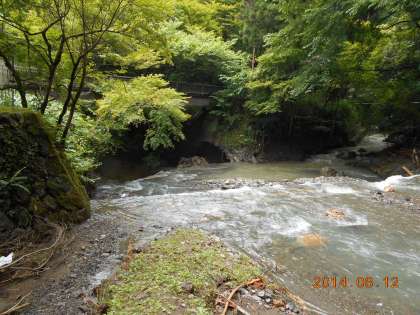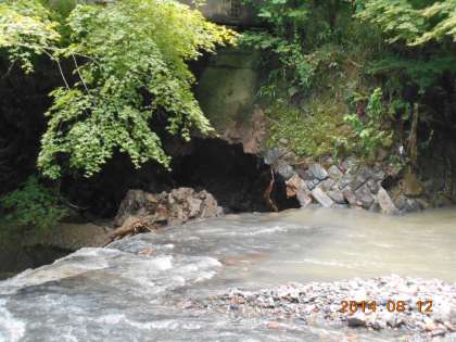 台風の大雨により,貴船口の橋下にある堰堤が損壊しております。