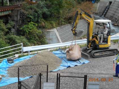 崩壊した護岸壁の復旧工事が始まりました。木・金・土の3日間で作業を完了し,児童が登校する26日には通行可能になる予定です。工事が順調に進むことを願うばかりです。