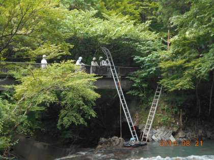 せまい橋の上からの工事で大変です。