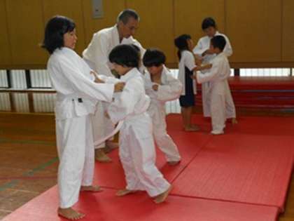 下の写真は初心者のための基礎練習を行っている様子です。早く試合に出られるようになりたいと一生懸命に練習しています。