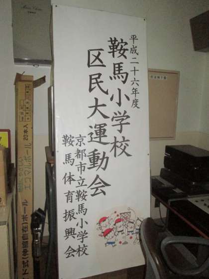 教頭先生が運動会の立て看板を作りました。