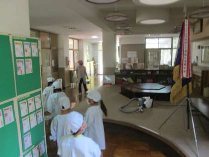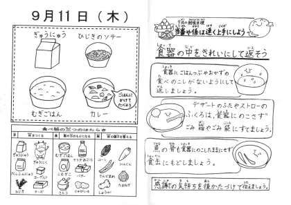 今日の給食は麦ごはん・牛乳・カレー・ひじきのソテーです。給食室からカレーの香り…。