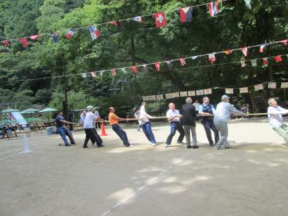 来賓の皆様も,鞍馬っ子も,綱を引いています。