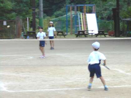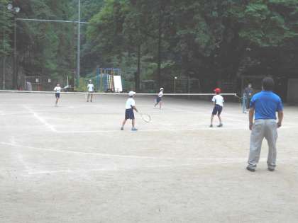 今日は運動場でソフトテニスをしました。