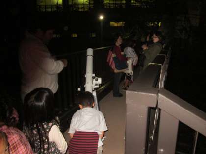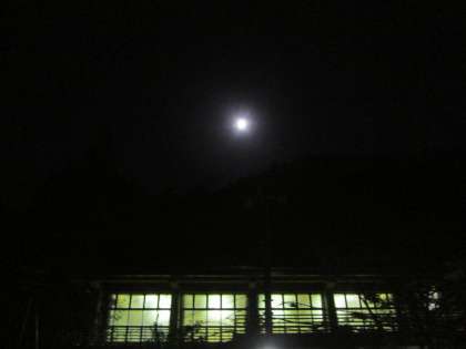 【月曜日の夜…PTAコーラス練習後】,【火曜日の夜…PTA実行委員会後】と,連夜に渡って天体観測をしました。立岡先生に理科室から天体望遠鏡を出してもらいました。きれいな夜空に浮かぶお月様,とてもよい‘お月見’となりました。保護者の皆様方も寒い中,ありがとうございました。(ちなみに今夜は‘皆既月食’です。今回の月食は,部分食が始まる6時15分頃から,部分食が終わる9時30分頃までの,3時間15分間くらいの観測時間となるのだそうです。修学旅行先の淡路島でも見られるといいですね。)