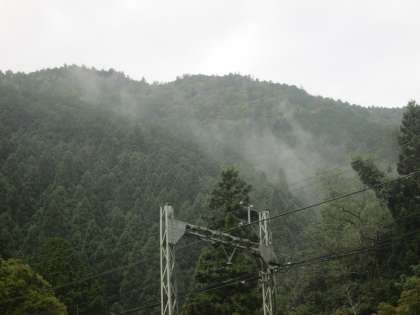 今朝は霧が立ち込めていました。幻想的な雰囲気の中,児童は登校します。