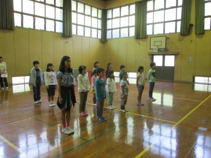 校歌斉唱の後,学校長からお話をしました。学習・運動(遊びやスポーツ)・生活・ルール(規則)・マナー…。様々なことを大切にしながらこれからも過ごしましょう。その後,4・5年生の発表がありました。みんな真剣に聞いていました。(昨日淡路島牧場でいただいた帽子も披露しました。)