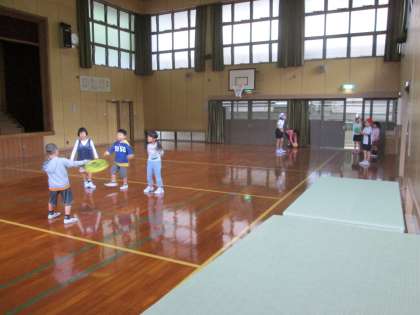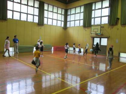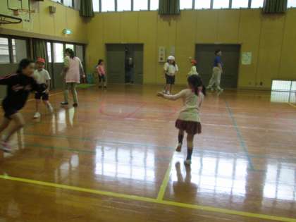 中間休みは体育館で過ごしています。鬼ごっこやバレーボールが人気のようです。