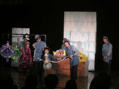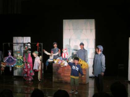 最後,お別れの前に,代表児童が人形操作を教えてもらいました。