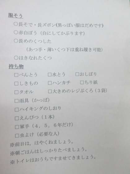 健康観察の後,トイレに行き,持ち物を確かめました。