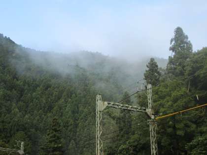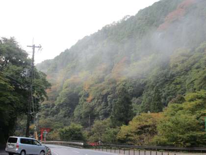 朝から鞍馬山・貴船山には“綿”のような雲がかかっています。幻想的です。