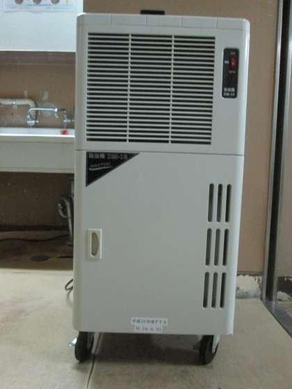 今日も湿気が多く,昨日に引き続き除湿機を稼働させています。PTA様からご寄贈いただいている除湿機は,1階北階段下に設置しています。体育館との連絡扉の曇りももうすぐ取れることでしょう。