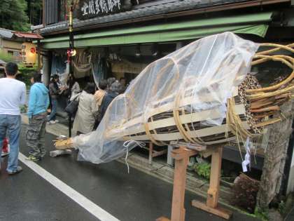 鞍馬街道の各ご家庭も,刻一刻と諸準備を整えておられます。山門付近や御旅所付近も,夜になるのを待っているかのようです。