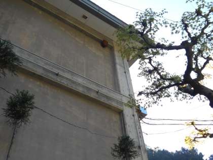 午前9時40分ごろ,管理用務員が校舎にハチの巣があるのを偶然,見つけました。