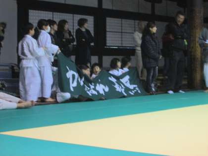 『がんばれ鞍馬』を持っての応援です。代表児童が懸命の戦いです。