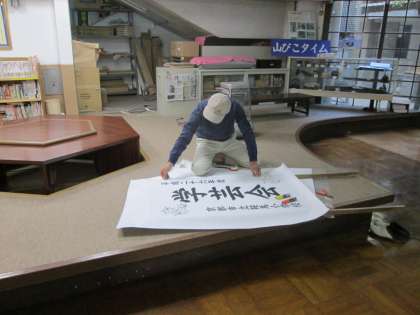 (教頭先生は看板作りをしています。)