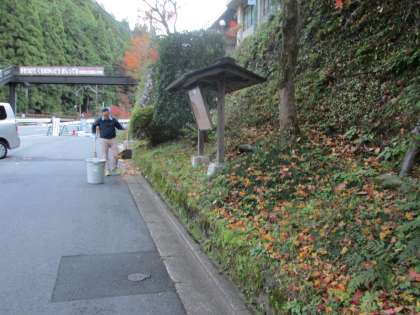 「掃いたしり(後)から,上から葉っぱが落ちてきますねぇ…。」