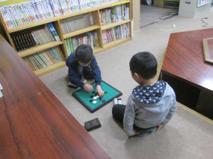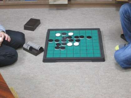 土曜学習に来た児童,仲良くオセロで待機です。