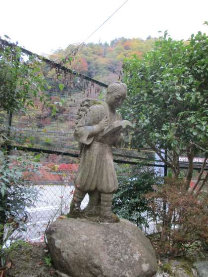 鞍馬っ子が元気に走っている様子を,二宮金次郎さんが,本を読み歩きながら応援してくれていました。