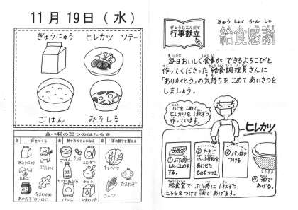 給食を取りに来た子どもたちから,「やったー!」の歓声があがります。みんな食べる前から,笑顔いっぱいです。給食に携わっておられる皆様に感謝です。