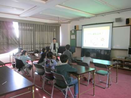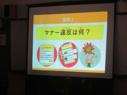 『産学連携』…昔では考えられなかった,携帯電話についての授業です。業界の方が来校され,将来困ることがないように“ルールやマナー”について教えてくださっています。ケータイ教室の先生は,携帯教室認定講師,黄瀬和歌子先生です。