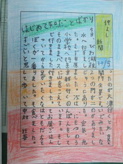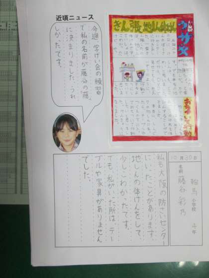 岩手県宮古市立亀岳(きがく)小学校からきた『はがき新聞』に,お返事を書いています。同じくらいの年齢,同じくらいの規模の小学校どうしの交流を続けています。とても貴重な,良い経験・勉強になりますね。