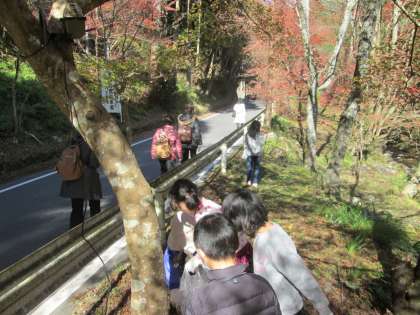 昨日のクリーン活動の様子です。“鹿の骨”を発見したり,『恋の道』『蛍岩』『和泉式部』…などの標識や解説に興味を持ったりしていました。