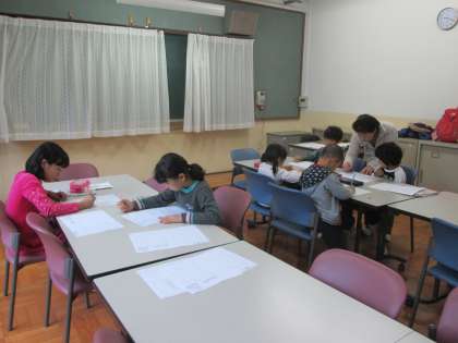 早速課題に向かう鞍馬っ子,なかなか難問のようです。算数の文章題や国語の文章読解問題です。