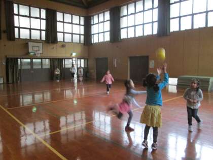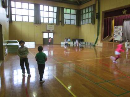 今日は雨なので,体育館で遊んでいます。