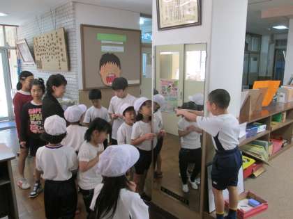 今日は鏡の前で『面白いポーズ』をしていました。周りの笑顔が伝染していきます。