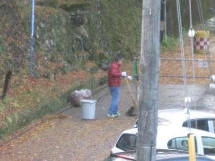 ここ数日の風で,葉っぱがどっと落ちました。今朝も門掃きをしています。