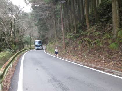 大型バスに気をつけて走ります。