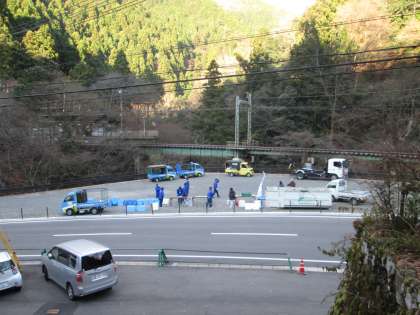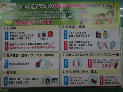 学校前に環境政策局の方々が来られています。有害ゴミや危険ゴミの『移動式拠点回収』です。早速学校もお世話になりました。