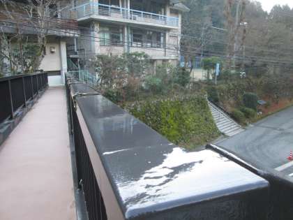 今朝の歩道橋は凍っていません。しかし付近は1度で寒いです。