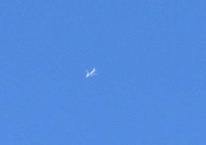 4・5・6年は体育の着替えで,少しあとから運動場に出てきました。空に飛行機が飛んでいるのを子どもが見つけました。