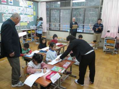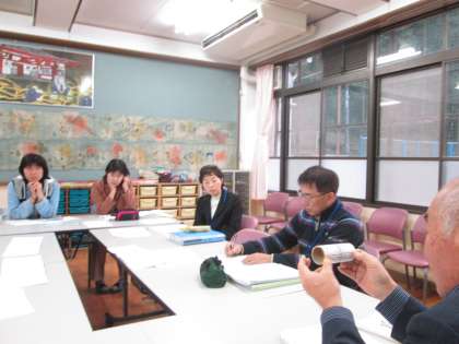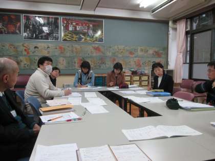 授業の後,1年生が頑張って発表していた学習活動を中心に,京都市教育委員会の齋田先生からご指導いただきました。手作りの算数グッズも見せていただきました。