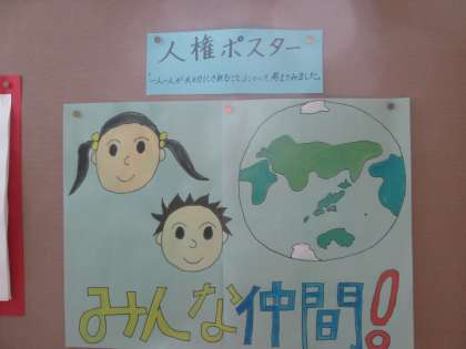 今日の5時間目は,全校で人権のことを考える『人権学習交流会』でした。1年生もみんなの前で自分の考えていることを話せていました。ワンガリ・マータイさんが,ケニアでどんなことをしてこられたのか,また,ノーベル平和賞についてのお話も出ました。