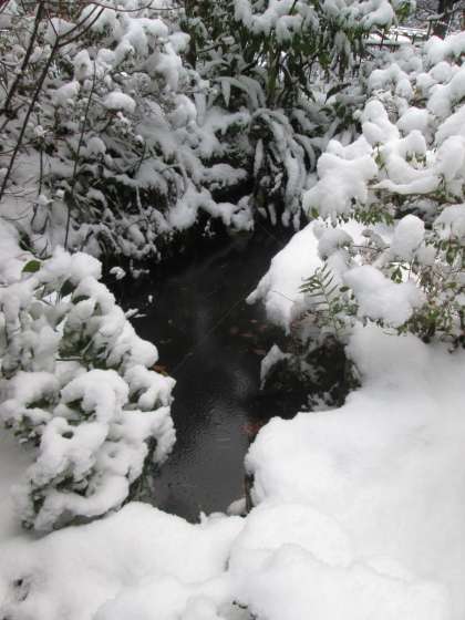 池が凍っています