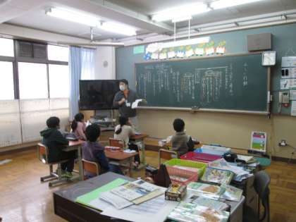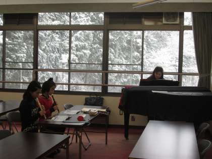 4年生は道徳(正しい行動),5・6年生は音楽(リコーダー演奏)です。外は深々と雪が降っています。
