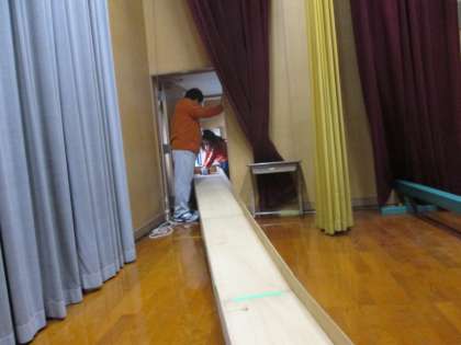 3・4年生が舞台の上で実験を開始しました。