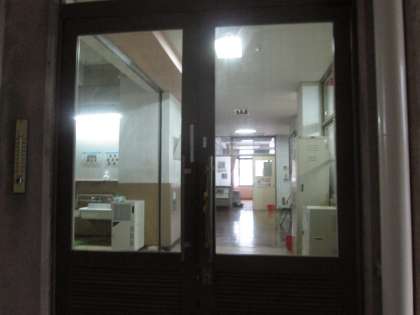 昨日,水島工務店様に本館1階の“ガラス扉”の修理をしていただきました。体育館への通路にもなっており,安心して開閉できるようになりました。ありがとうございました。