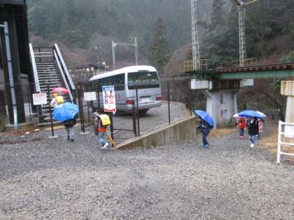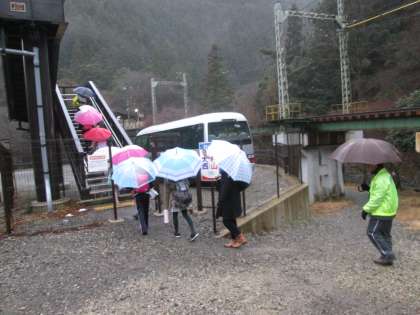 色とりどりの傘をさしての登校です。みんな元気そうです。